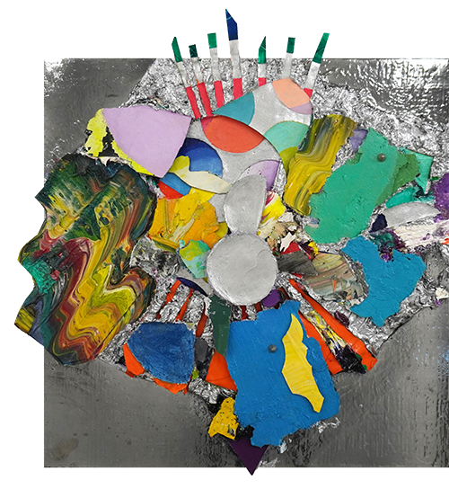 素材:油彩、銀塗料、スタッズ、メディウム、パネル